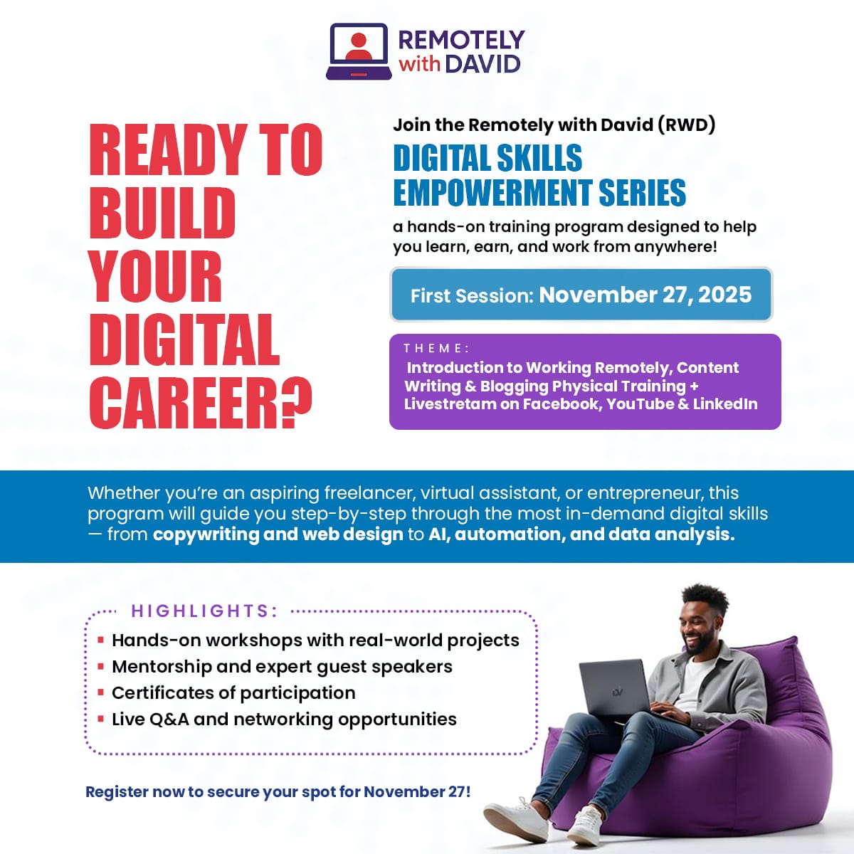 Register now for the upcoming training on “Introduction to Working Remotely, Content Writing & Blogging” — November 27, 2025.